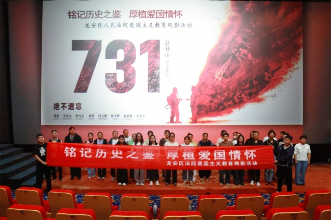 为纪念中国人民抗战暨世界反法西斯战争胜利80周年,弘扬伟大抗战精神和爱国主义精神,教育党员铭记历史真相,凝聚奋进力量,9月25日,安阳市龙安区人民法院组织全体干警集体观看历史题材影片《731》,以此特殊形式开展了一场深刻且富有教育意义的爱国主义教育活动。