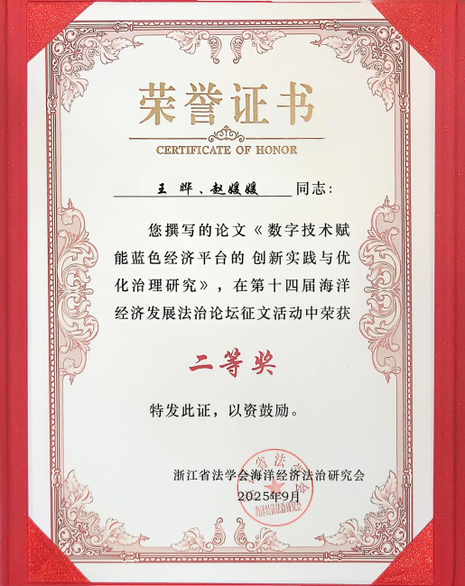 今年以来,我院干警不负期望,紧扣工作实际深入剖析、总结工作经验、探索解决路径,多篇论文因选题精准、观点鲜明、兼具理论深度与实践价值,获得成果转化。其中,院党组书记、院长王晔、审管办法官助理赵媛媛撰写的《数字技术赋能蓝色经济平台的创新实践与优化治理研究》荣获浙江省法学会海洋经济法治研究会二等奖;执行局法官助理赵振旗撰写的《新<公司法>下出资未届期限股权转让人的责任承担探析》获河南省法学会商法学研究会年会三等奖。