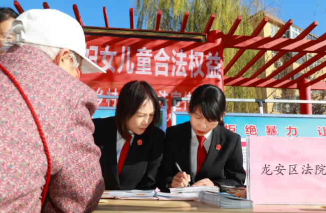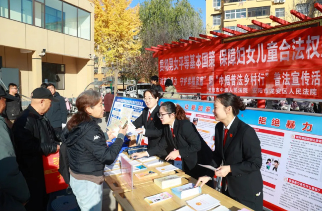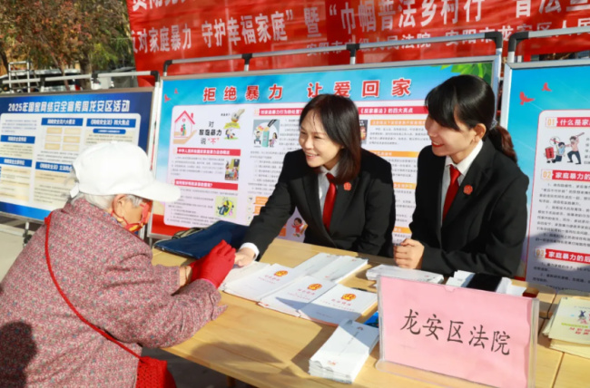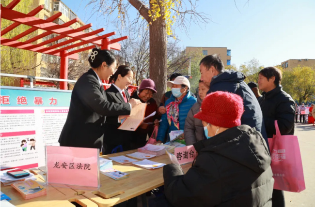 为进一步提升群众反家暴意识,预防和制止家庭暴力,在2025年11月25日“国际消除家庭暴力日”当天,龙安区人民法院组织干警前往龙安区太行东社区,参加了由市妇联联合市法院、市检察院、市公安局等十余家单位共同举办的“反对家庭暴力 守护幸福家庭”主题普法宣传活动,用法治力量为家庭安全保驾护航。