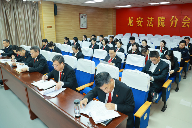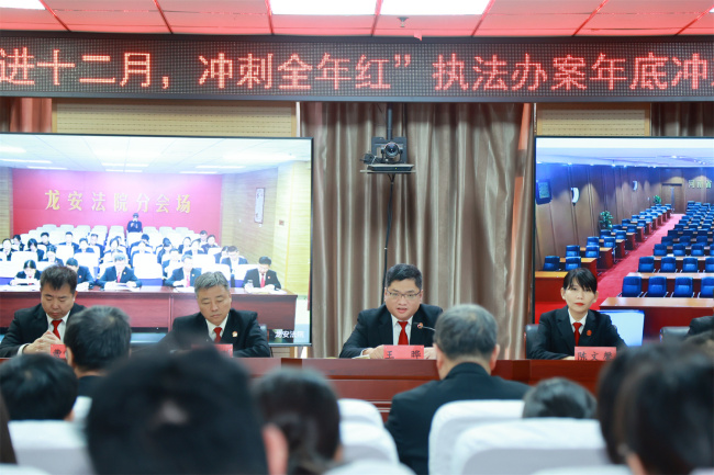 为坚决打好年终执法办案收官战,12月8日上午,龙安区人民法院召开执法办案年底攻坚冲刺动员会,吹响“奋进十二月、冲刺全年红”的冲锋号角,深入分析当前审判执行和营商环境评价工作态势,全面部署年底攻坚任务。会议旨在动员全院干警进一步凝聚共识、提振精神、聚焦短板、全力冲刺,确保高质量完成年度各项工作目标。党组书记、院长王晔出席会议并讲话,党组副书记、副院长陈文馨主持会议,各部门负责人、员额法官、法官助理参加会议。