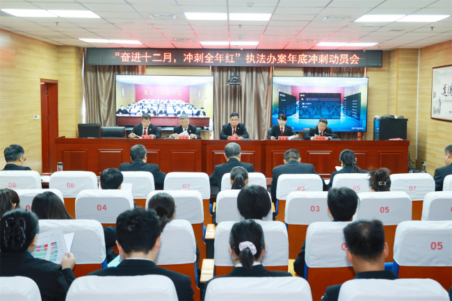 知不足而奋进,望远山而前行。会议号召全院干警要切实增强收官冲刺的紧迫感和责任感,以坚定的信心、饱满的热情、扎实的作风,全力以赴投入年底执法办案攻坚战,以“时不我待、只争朝夕”的紧迫感,“攻坚克难、使命必达”的决心,决胜收官战,冲刺全红年,为全年工作画上圆满句号,为新一年工作开好局起好步奠定坚实基础。