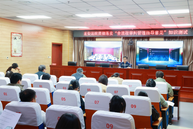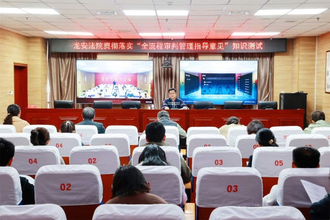 为深入贯彻落实安阳市中级人民法院《关于进一步做实全流程审判管理 全面提升审判质效的指导意见(试行)》,推动全院干警准确把握核心要义、自觉转化工作实践,3月19日下午,龙安区法院组织开展“全流程审判管理指导意见”知识测试,以考促学、以学促干,确保《指导意见》各项要求落地生根、见行见效。党组书记、院长王晔主持监考,院领导班子成员、全体员额法官及法官助理参加知识测试。